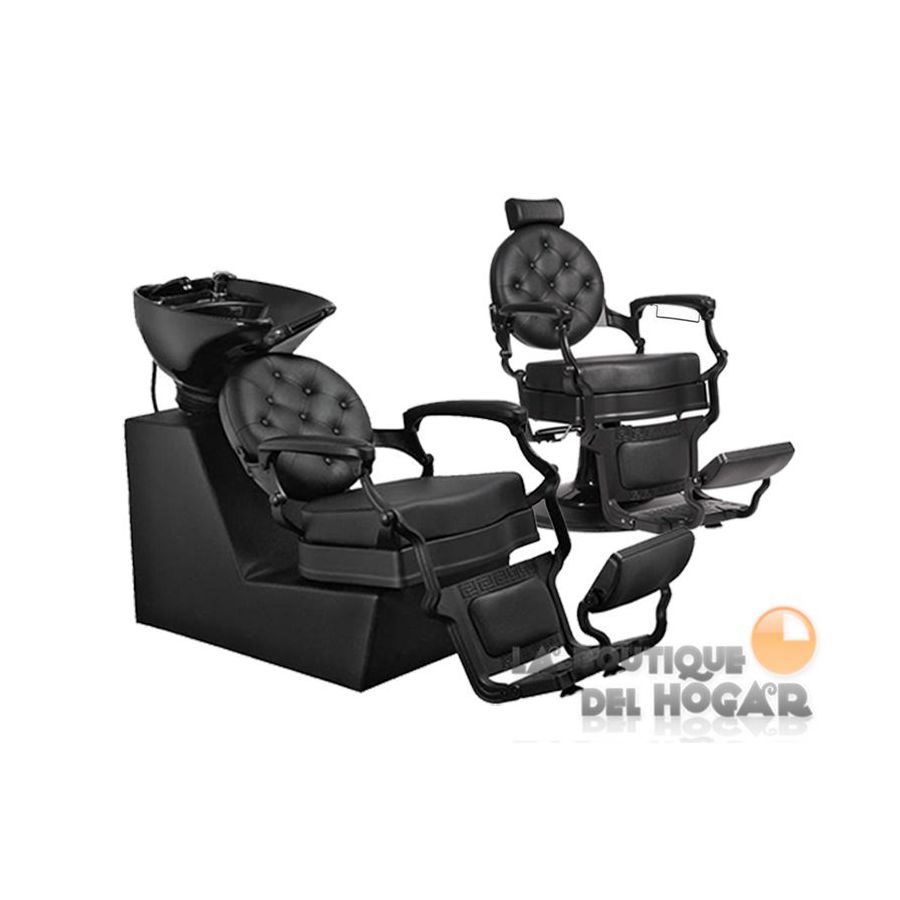 Pack - Lavacabezas estilo Retro Vintage Modelo Ranch Black / Sillón Clásico de Barbero Modelo Buzz Black Negro