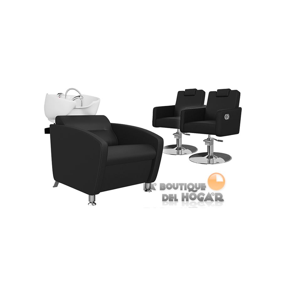 Pack - 1 Lavacabezas Con Pica a elegir Cubo Basic Negro + 2 Sillones De Corte Versa Plus Negros