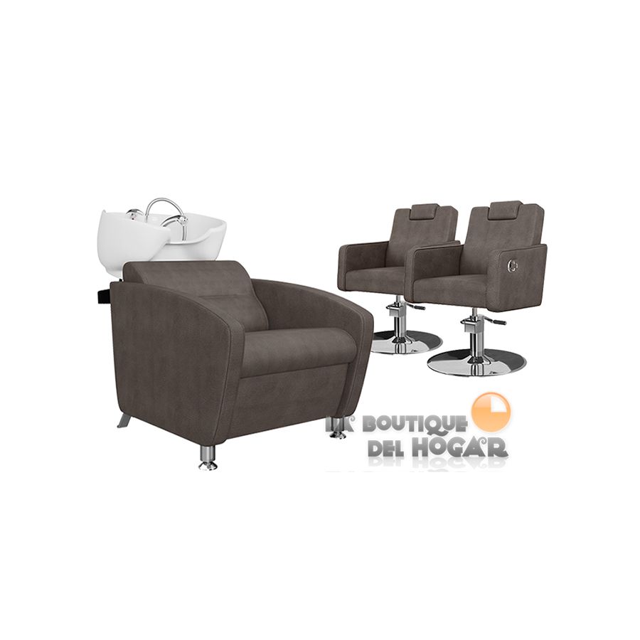 Pack - 1 Lavacabezas Con Pica a elegir Cubo Basic + 2 Sillones De Corte Versa Plus Marrón grisáceo