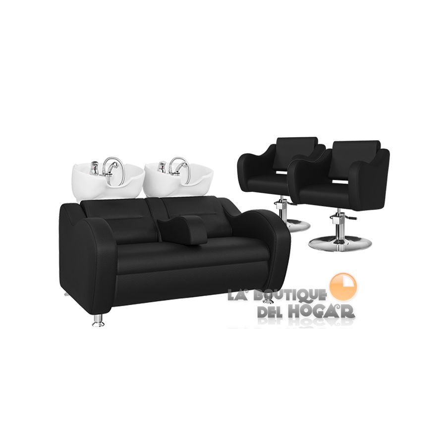 Pack - 1 Lavacabezas Con Pica Blanca Onda Doble Negro + 2 Sillones De Corte Frida Negros