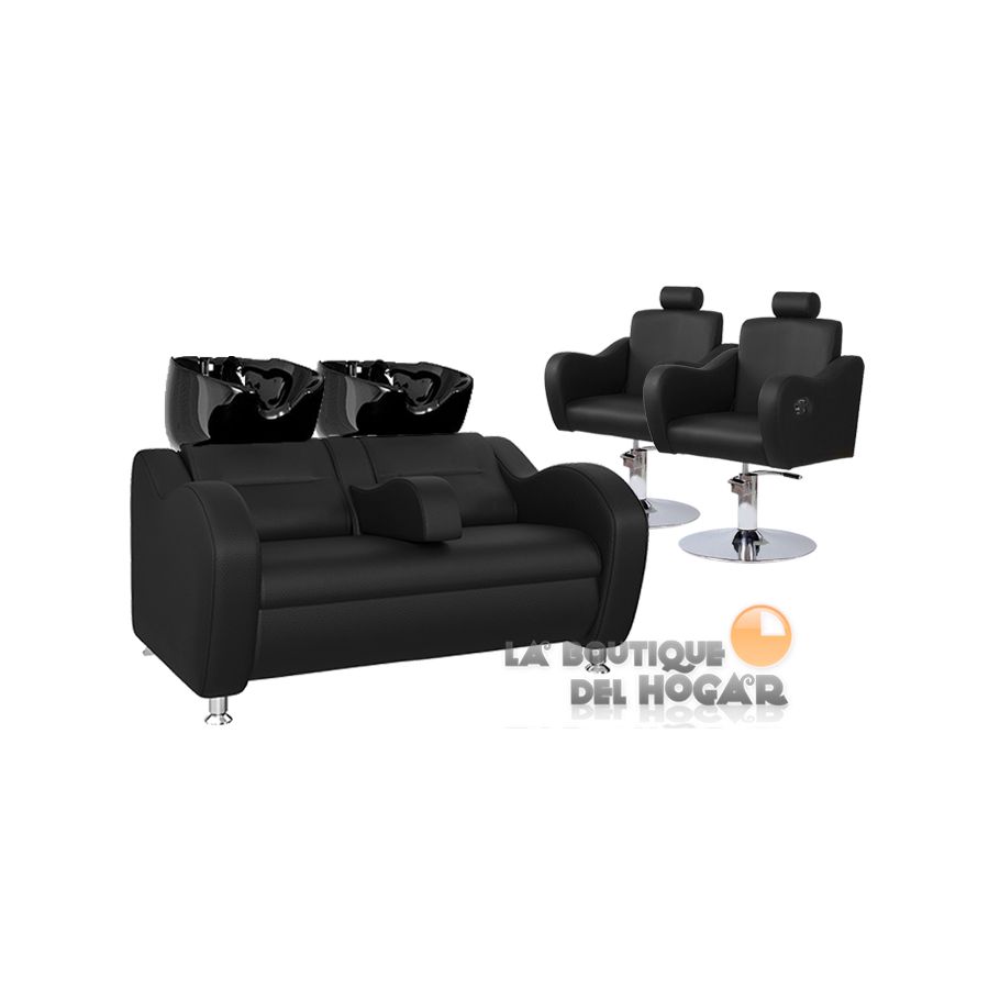Pack - 1 Lavacabezas Con Pica Negra Onda Doble Negro + 2 Sillones De Corte Gala Negros