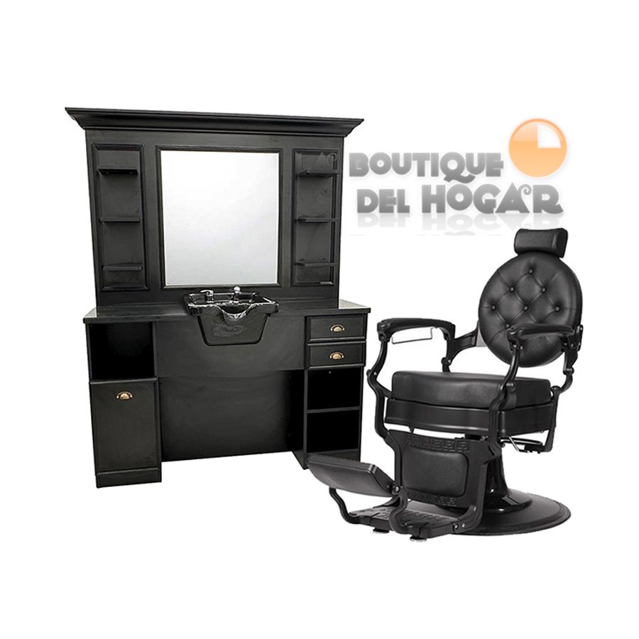 Pack - Sillón Barbería Buzz Black Negro / Tocador Barbería Bansa