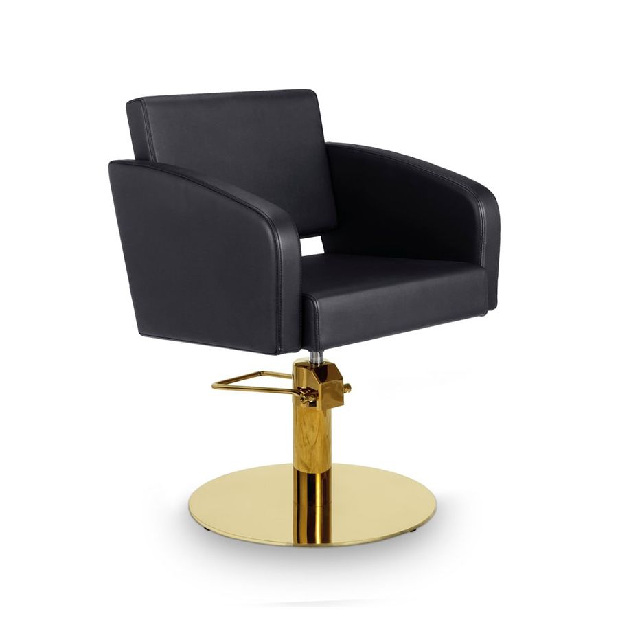 Sillón hidráulico de corte con base redonda dorada y reposabrazos Modelo Loris BGR