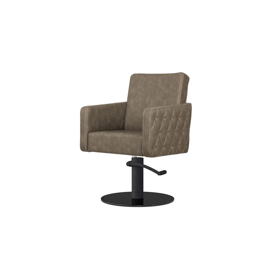 Sillón Corte de Peluquería con reposabrazos Modelo Iris Marrón Grisáceo con costuras - Base negra a elegir