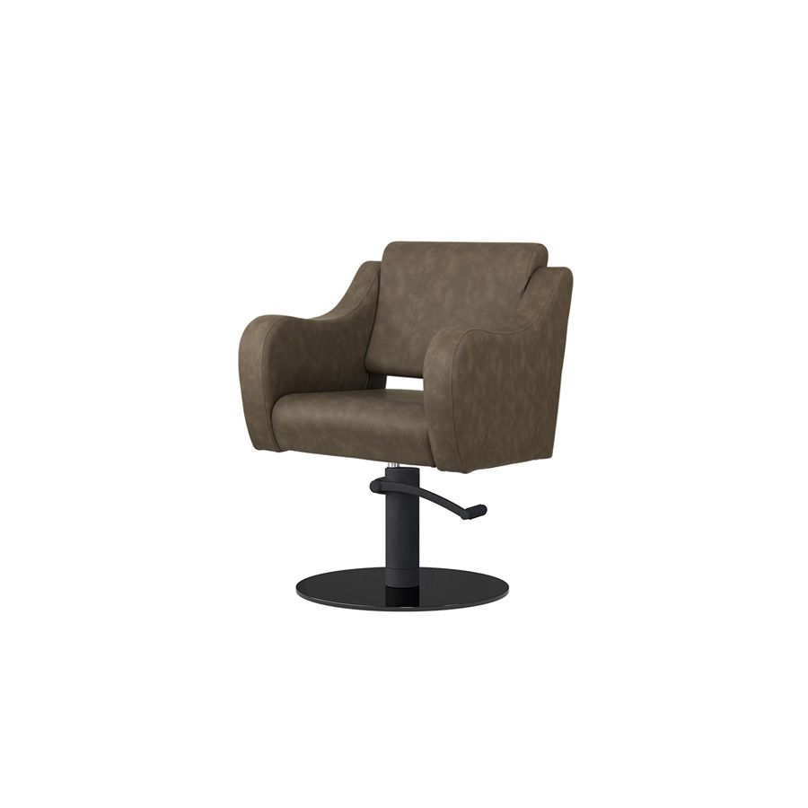 Sillón Corte de Peluquería con reposabrazos curvados Modelo Frida Marrón grisáceo Liso - Base negra personalizada