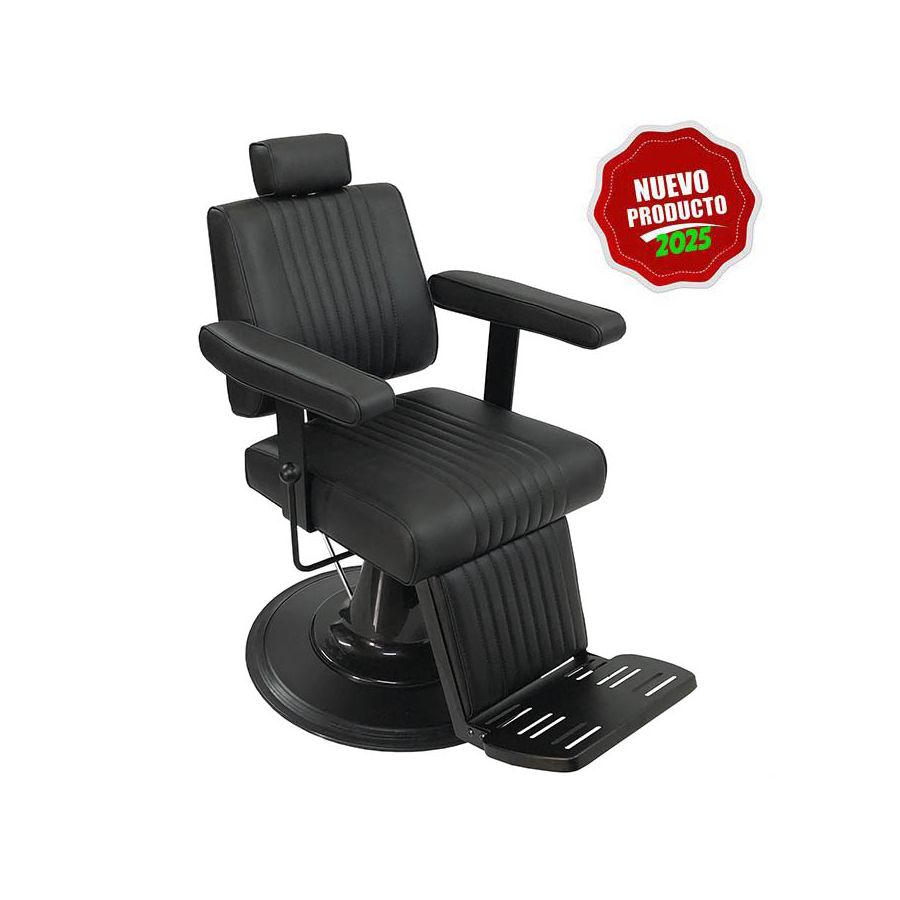 Sillón Barbero hidráulico reclinable y giratorio con reposabrazos Modelo Cut Black - Color Negro