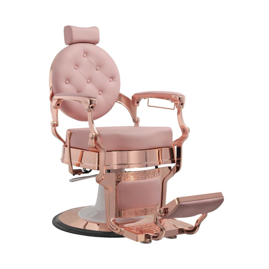 Sillón Clásico de Barbero hidráulico estilo Retro Vintage con reposapies integrado Modelo Buzz Rose color Rosa