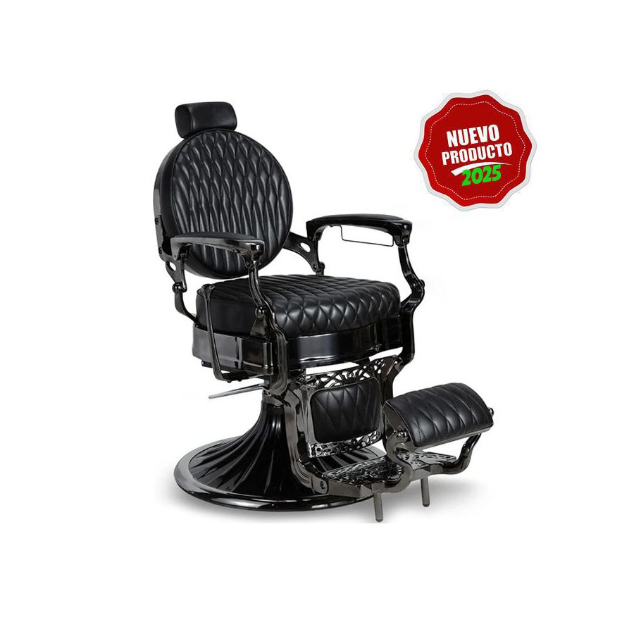 Se trata de un elegante Sillón hidráulico regulable en altura, con un diseño clásico y elegante, que destaca por su llamativo estilo retro Vintage, y que dispone de asiento y reposabrazos con acabado metálico, así como reposacabezas y un práctico reposapies integrado. Además, el sillón Kirk BC es reclinable y dispone de elevación en altura mediante bomba hidráulica con freno además de un llamativo acabado, tapizado en polipiel retardante al fuego de alta calidad, con un atractivo diseño con costuras romboidales en color negro. Algunas de las características generales más importantes del Sillón hidráulico modelo Kirk BC, que lo hacen ideal para peluquería o barbería, son las siguientes: