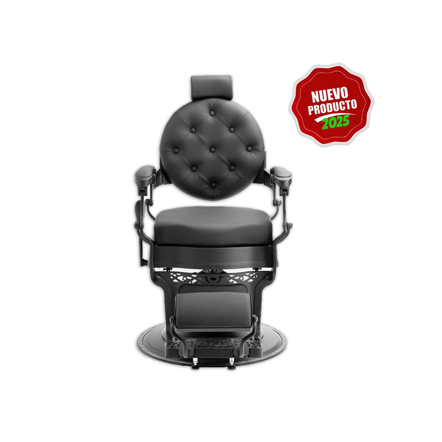 Sillón Clásico de Barbero hidráulico estilo Retro Vintage con reposapies integrado Mae Black Negro - Modelo 2025