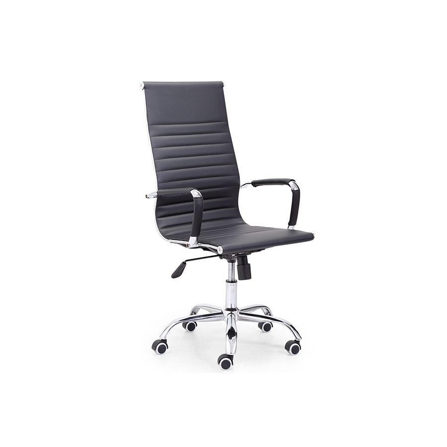 El sillón Letter es es un modelo atemporal con una imagen moderna y elegante, el complemento ideal que encajará perfectamente en su despacho, oficina o lugar de trabajo. Su tapizado en Simil piel de alta calidad transpirable en color negro, y su diseño moderno con respaldo estilizado y tapizado con relieves, unido a su estructura inferior cromada, aportará el toque de estilo y elegancia que necesita su oficina, combinando muy bien en cualquier tipo de ambiente de trabajo y conjuntando de manera adecuada con cualquier otro mobiliario de oficina tradicional.