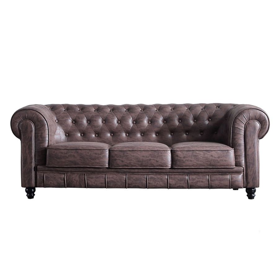Sofá de diseño de 3 plazas Tejido Chocolate envejecido Modelo Chesterfield