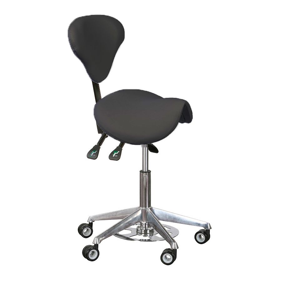 Se trata de un Taburete con respaldo envolvente, con asiento en forma de silla de montar, regulable en altura y con inclinación del respaldo ajustable, con un diseño ergonómico, cómodo y elegante, que no puede faltar en peluquerías, salones de estética, manicura y pedicura. Algunas de las características generales más importantes del Taburete Modelo Batri Adapt son las siguientes: