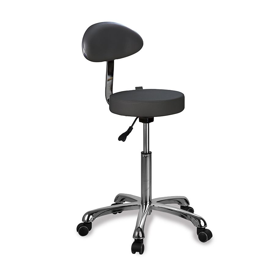 - Taburete redondo y plano con respaldo ergonómico.
