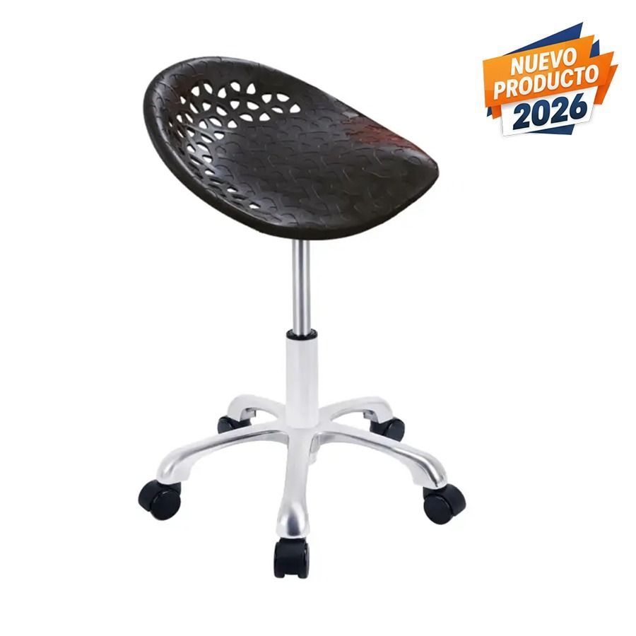Se trata de un Taburete sin respaldo, con asiento plano y circular y con un diseño ergonómico, cómodo y elegante, que no puede faltar en peluquerías, salones de estética, manicura y pedicura, donde la ergonomía resulta esencial. Su asiento ergonómico y transpirable garantiza una superficie resistente, fácil de limpiar y preparada para el uso intensivo diario, proporcionando una experiencia de asiento cómoda y duradera.