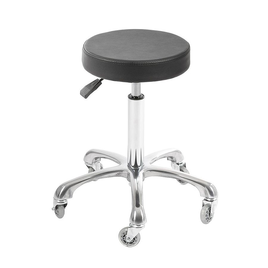 Se trata de un Taburete sin respaldo, con asiento plano circular y base de aluminio inyectado muy resistente, con un diseño ergonómico tapizado en en poliuretano color negro, cómodo y elegante, que no puede faltar en peluquerías, salones de estética, manicura y pedicura. Además, el taburete modelo Motion cuenta con 5 ruedas de patinaje con doble cojinete y su altura se puede ajustar cómodamente mediante pistón de gas.