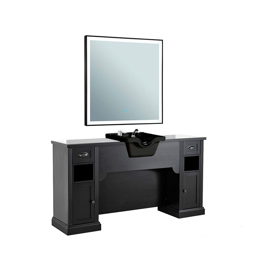 Tocador de Barbería Vintage con Lavacabezas Negro y Espejo Modelo WILLIAM 11B