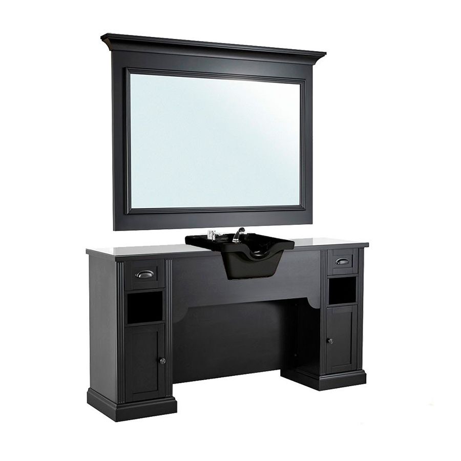 Tocador de Barbería Vintage con Lavacabezas Negro y Espejo Modelo WILLIAM 3B