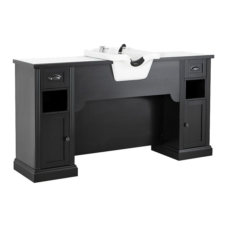 El Tocador de Barbería Vintage con encimera y Lavacabezas Modelo WILLIAM 5B es uno de los Tocadores de barbería más completos, y con más clase y elegancia, que existen actualmente en el mercado. El mueble está elaborado con materiales de la más alta calidad con estructura de chapa de madera natural con molduras de madera maciza barnizada. El Tocador WILLIAM 5B incorpora un lavacabezas de cerámica blanca, además de un mueble con diferentes espacios de almacenaje con cajones y puertas, así como una practica encimera con cristal protector para las salpicaduras del agua, aportando un toque de estilo y distinción a su barbería.