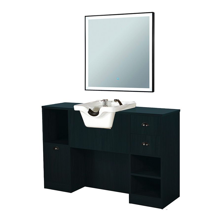 Además, el Tocador de Barbería OKE 9 incorpora un elegante Espejo de diseño cuadrado, así como una gran cantidad de espacios de almacenaje como son: