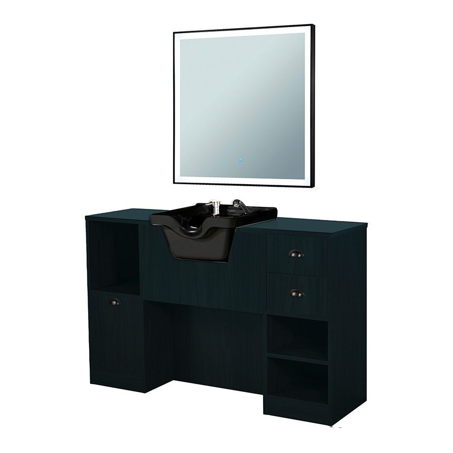 Tocador de Barbería Vintage con Lavacabezas Negro y Espejo Cuadrado Modelo OKE 9
