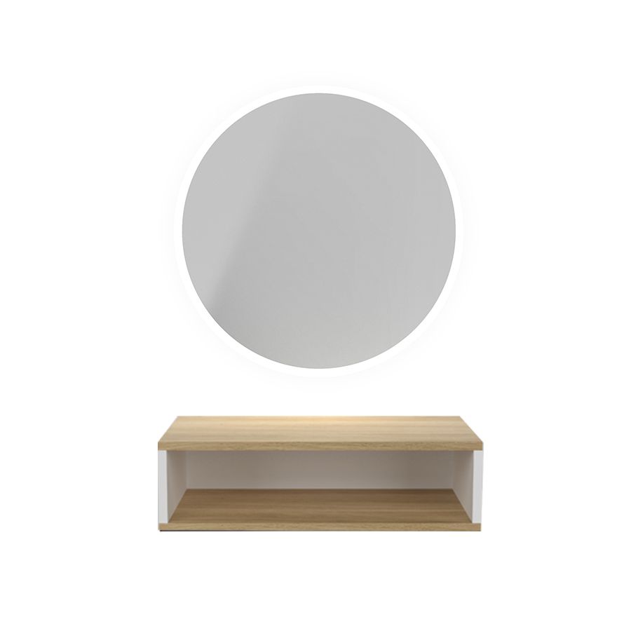 Tocador de Peluquería estilo Minimalista con espejo redondo LED y estante Oak Modelo TANA