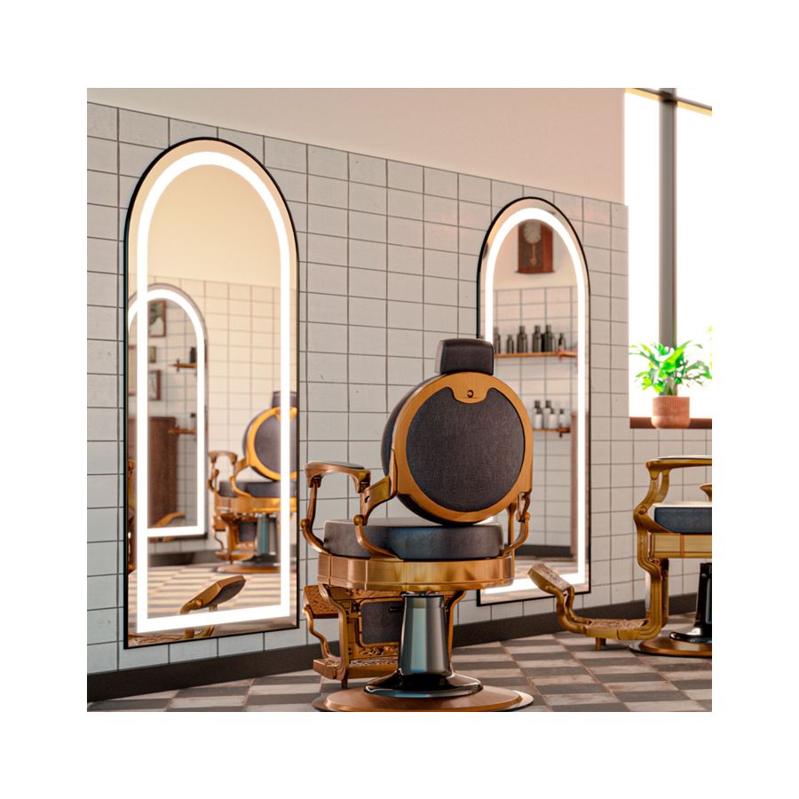Tocador de Peluquería ovalado tipo capilla con espejo LED y marco plateado Modelo RIM CP