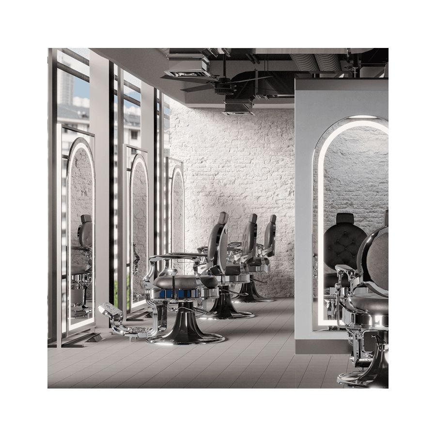 Tocador de Peluquería ovalado tipo capilla con espejo LED y marco plateado Modelo RIM CP
