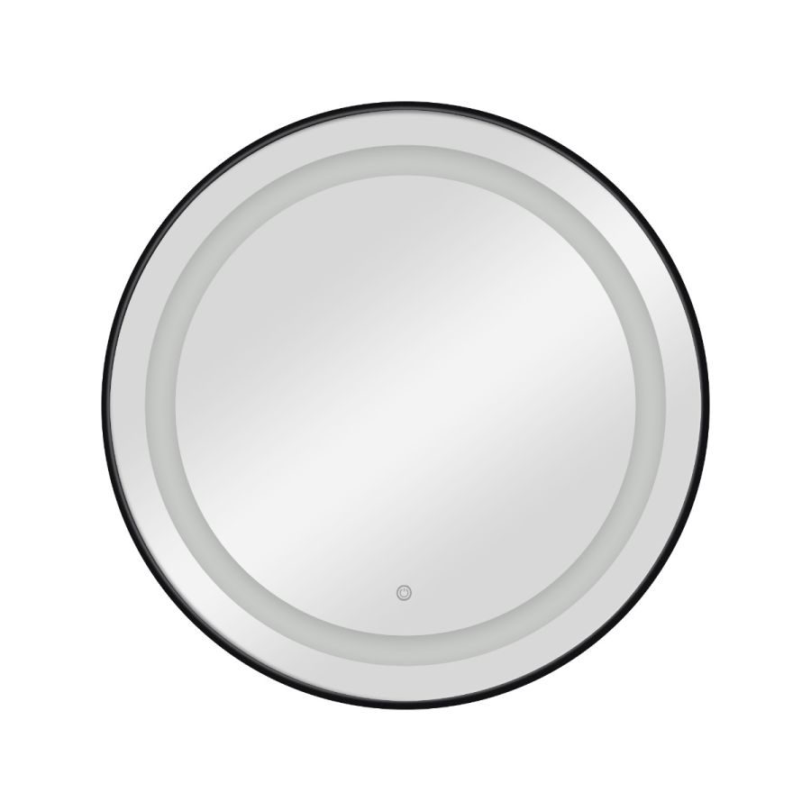 Tocador de Peluquería redondo estilo Moderno con espejo LED y marco negro Modelo Bree Black 80 cm