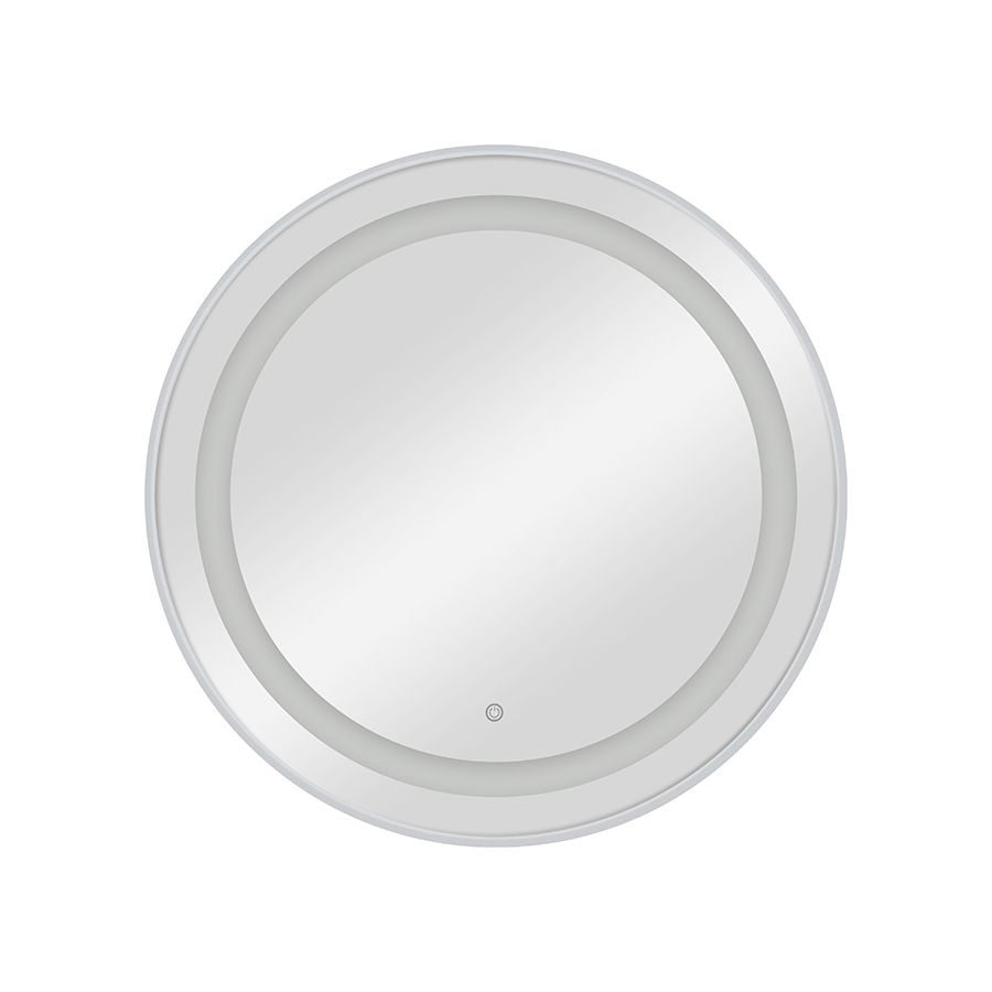 Tocador de Peluquería redondo estilo Moderno con espejo LED y marco plateado Modelo Bree Silver 80 cm