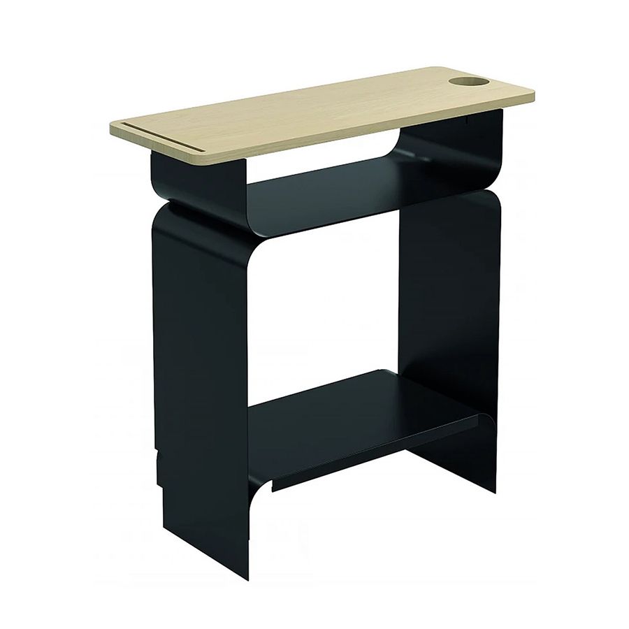 - Fabricado en chapa metálica curvada pintada en negro mate.