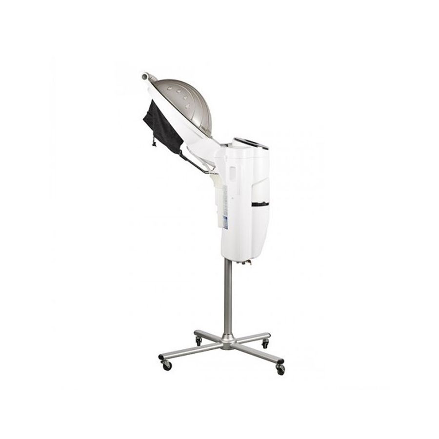 Se trata por tanto de un vaporizador Capilar eléctrico con emisión de vapor y función de Ozonoterapia, de diseño ligero, moderno y funcional, con soporte de pie de gran estabilidad, equipado con Sistema Generador de Ozono. El vaporizador cuenta con una altura regulable, además de 4 ruedas para su transporte que le aportan gran estabilidad y es ideal para tratamientos capilares para personas con afecciones relacionadas con la calvicie o los folículos pilosos, gracias al gran efecto antibacteriano de Ozono, mientras que oxigena e hidrata la piel del cuero cabelludo.